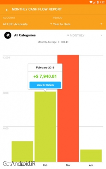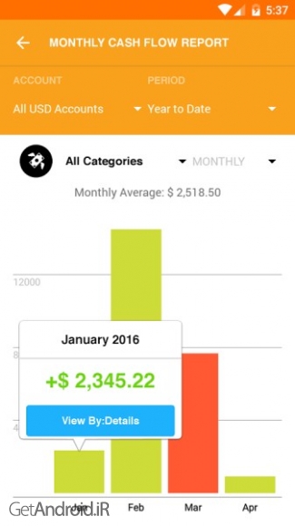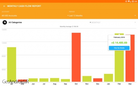 دوازده گزارش موجود شامل: نقدینگی ماهیانه، درامد و مخارج گت، اندروید مخارج روزانه و ماهیانه و بیشتر