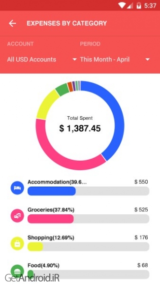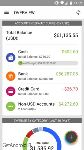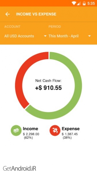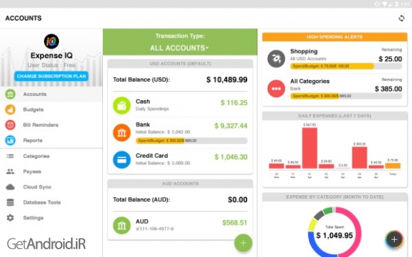 لیستی کامل از ویژگی های هوشمند برنامه Expense IQ اندروید :
