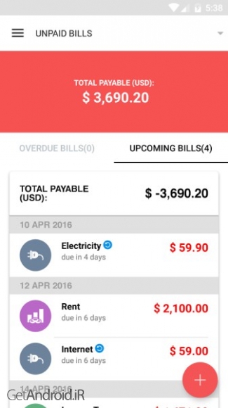 دیگر نیازی نیست هزینه دیرکرد قبض های پرداخت نشده را پرداخت کنید. آلارم قبض ها را دستکاری کنید و آلارم بموقع را دریافت کنید. از صورت حساب ها و یا قبض هایتان عکسی بگیرید و آرشیو آنها را نگهداری کنید. حساب ها را می توانید به بیش از 150 پول رایح با نشان ها و جداسازهای اعشاری اختصاص دهید. نقل و انتقال پول بین حساب های تان در پول های ر رایج مختلف نیز با نرخ صرافی زنده قابل اجرا است.