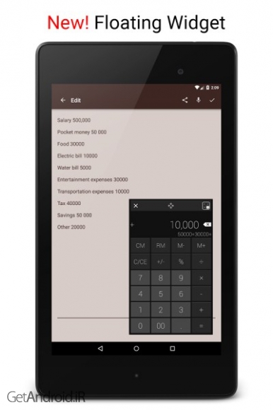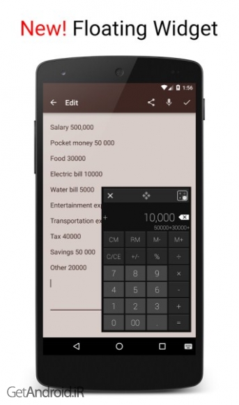 یک ماشین حساب ساده و در عین حال بسیار شیک و حرفه ای می باشد . این ماشین حساب که تا 12 رقم ورودی را میپذیرد، قابلیت محاسبه درصد ، محاسبه ثابت ، تکرار و نمایی و همچنین محاسبه بهره و سود را داراست . این برنامه داری قابلیت ذخیره محاسبات و فرمول ها را دارد ، پس خیالتان راحت باشد که هیچگاه آنها را از دست نداده و هر باری که وارد نرم افزار شوید میتوانید به فرمولها و محاسبه های قبلی خود دسترسی داشته باشید. این اپلیکیشن همچنین دارای یک ویجت کامل و حرفه ای بوده که میتوانید از آن در صفحه اصلی گوشی اندرویدی خود استفاده کنید.برخی از ویژگی های برنامه Calculator - Simple & Stylish Pro اندروید :