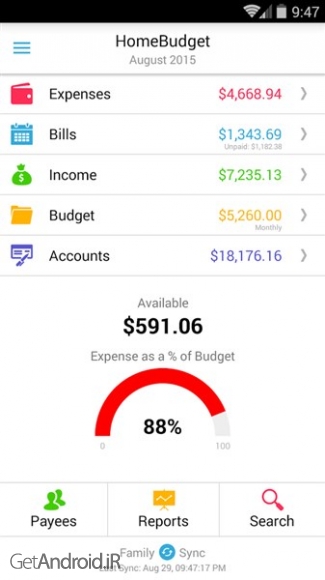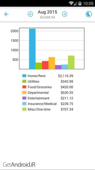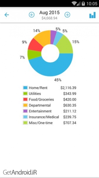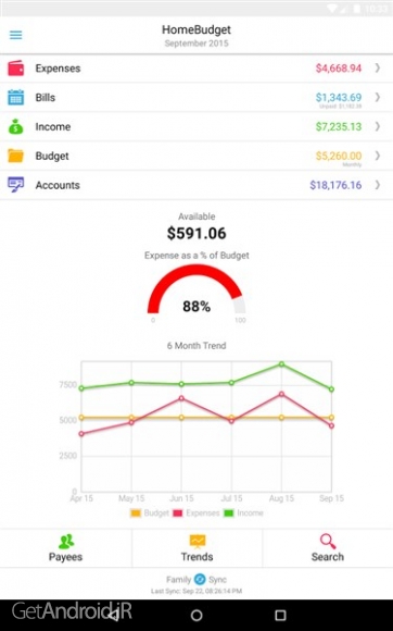 یک برنامه ی یکپارچه برای کنترل و پیگیری هزینه های شما از جمله درآمد، صورتحساب، و توازن حسابهای شما طراحی شده است. شما با استفاده از نمودار و جدول میتوانید هزینه و درآمد خود را تجزیه تحلیل کنید.ویژگیهای برنامه Home Budget with Sync اندروید :