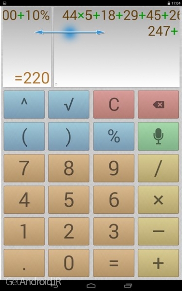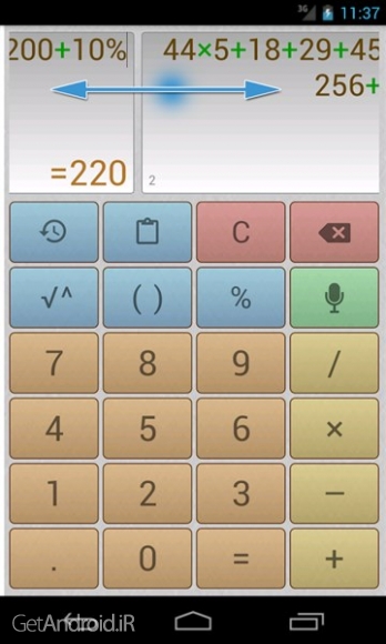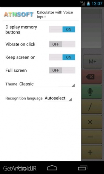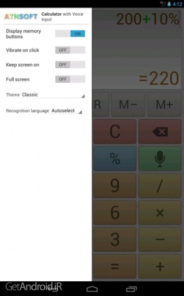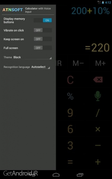 یک برنامه ماشین حساب چند صفحه ای با ورودی صدا برای استفاده روزانه برای اندروید می باشد. ماشین حساب ATN به شما اجازه می دهد به طور ثابت اعداد و اصطلاحات ریاضی کاربری در یک کیبورد صفحه ای و ورودی صدا ( که عموما انگلیسی -چینی -کروات -فرانسوی -المانی -ایتالیایی -ژاپنی -کره ای -لهستانی -پرتغالی -روسی -اسپانیایی -ترکیه ای و ویتنامی را ساپورت می کند )را وارد کنید .فقط دکمه mic را فشار دهید و اصطلاح را صحبت کنید (بگویید) . ( برای مثال : 75 بعلاوه 12 ضربدر5 مساوی 135 ) ان در صفحه نمایش ظاهر میشود و فورا نتیجه محاسبه خواهد شد .به طور همزمان دو محاسبه یا بیشتر انجام دهید. گت اندروید برای انجام دادن این کار شما می توانید صفحه نمایشگر را با یک ضربه افقی در طول لبه < بالایی تعویض کنید .