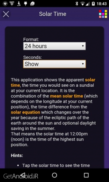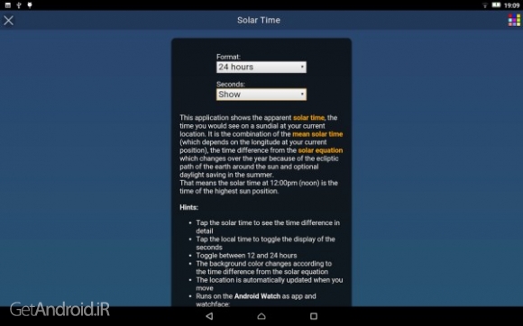 برخی از ویژگی های برنامه Solar Time اندروید :