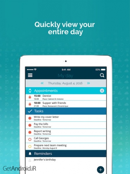 ✤ نمایش یکپارچه از کل کار های تان در روز