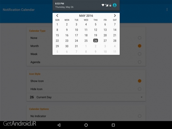 • تاریخ و روز فعلی را به عنوان آیکون اطلاع رسانی نمایش دهید
