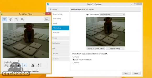 این امکان را به شما می دهد تا به راحتی اسمارت فون اندرویدی خود را به یک وبکم همراه تبدیل کرده و در Skype و Google+ و برنامه های دیگر چت کنید. تنها با استفاده از بلوتوث و یا یو اس بی گوشی خود را به یک وبکم تبدیل کنید . دقت داشته باشید که اگر مایل باشید این امکان را خواهید داشت تا از این وبکم در مسنجرهایی نظیر یاهو ، گوگل تاک و … استفاده کنید . به شما کاربران عزیز پیشنهاد می کنیم که حتما این اپلیکیشن را بر روی گوشی خود نصب نمایید . شما همچنین می توانید از DroidCamX از طریق مرورگر اینترنت خود به عنوان یک دوربین IP یا مدار بسته در تقریبا تمام شبکه ها استفاده کنید. از این برنامه به عنوان یک دوربین حیوانات خانگی، دوربین جاسوسی، و یا یک دوربین امنیتی استفاده کنید.این برنامه با یک کامپوننت کلاینت کامپیوتر که درایورهای وب کم را نصب می کند کار می کند، و با دستگاه اندروید به کامپیوتر وصل می شود. کلاینت های ویندوز یا لینوکس در دسترس هستند، برای دانلود، نصب و دریافت اطلاعات بیشتر، به سادگی از www.dev47apps.com بر روی کامپیوتر بازدید کنید.