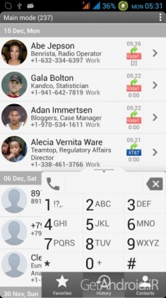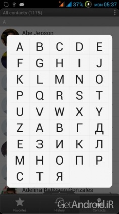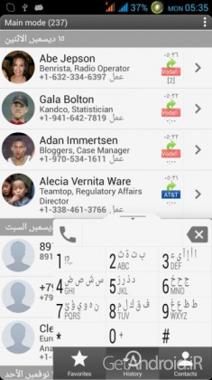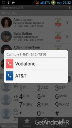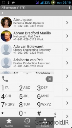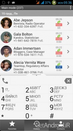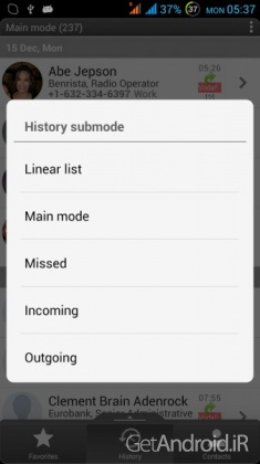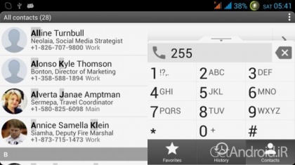 – سه حالت اصلی نمایش: مخاطبین، تاریخچه (سیاهه تماس) و مورد علاقه های شما