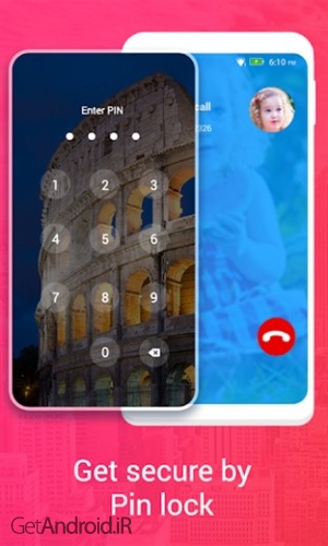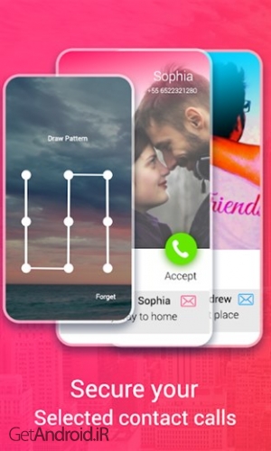 شما می توانید تماس های ورودی و خروجی خود را با پین و رمز عبور الگو ایمن سازی کنید. شما قادر به استفاده از تلفن پشت صفحه نمایش خواهید بود که تنها می توانید با پسورد باز کنید.توجه: این برنامه ممکن است قادر به پوشش و یا کار بر روی صفحه نمایش پاپ آپ از تماس های دریافتی نباشد یا ممکن است در برخی از تلفن های همراه کار نکند.