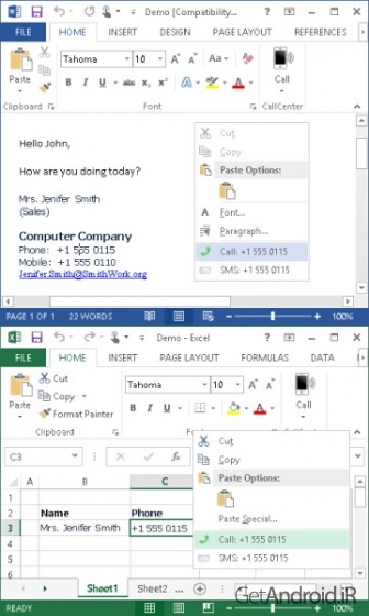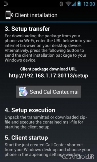 کلاینت کامپیوتر CallCenter در برنامه گنجانده شده است و می توان از گوشی به کامپیوتر خود منتقل کنید.