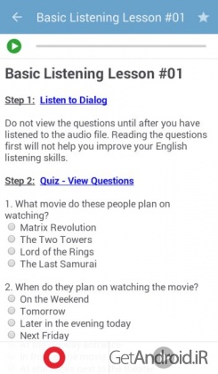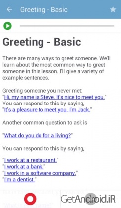 برنامه اندروید رسمی آفلاین TalkEnglish.com می باشد. بیش از 800 درس و 8000 فایل صوتی برای کمک به شما جهت یادگیری چگونگی صحبت کردن روان به زبان انگلیسی در این برنامه قرار دارد. اکثر درس ها شامل جملات قابل کلیک است که شما می توانید برای گوش دادن به تلفظ زبان انگلیسی مادری کلیک کنید. هر صفحه درس همچنین دارای یک ابزار ضبط است. شما می توانید صدای خواندن خود را ضبط کنید و آن را با فایل صوتی گوینده انگلیسی زبان مادری مقایسه کنید.ویژگی ها و قابلیت ها: