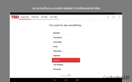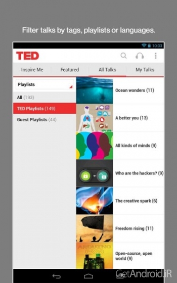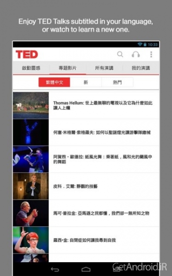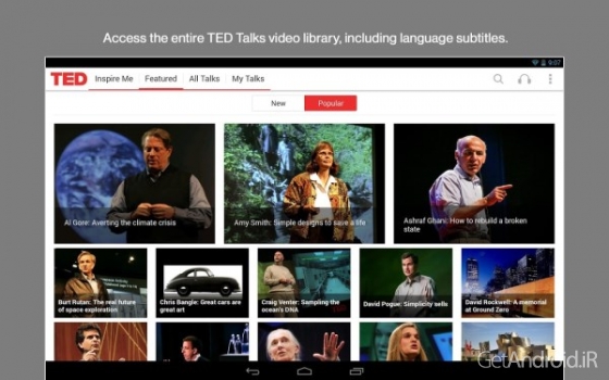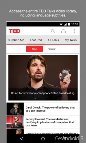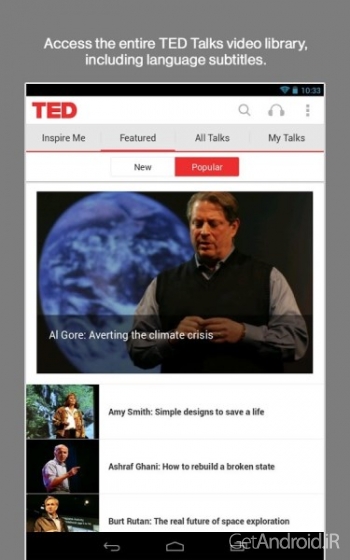 - وارد سایت گت اندروید شده و از بخش جستجو عبارت "TED" را تایپ کنید