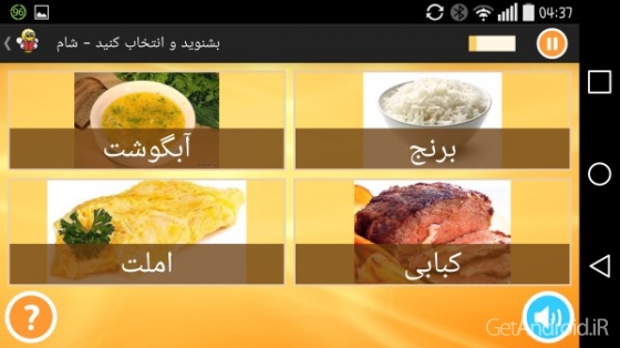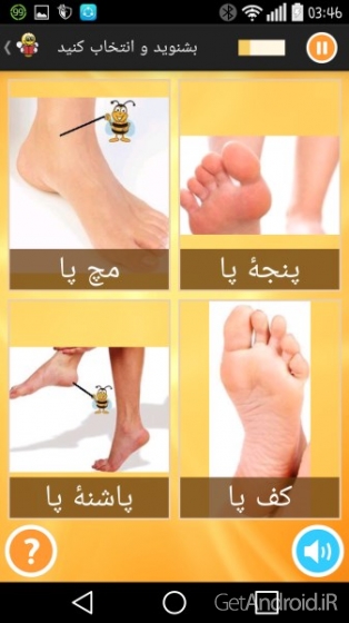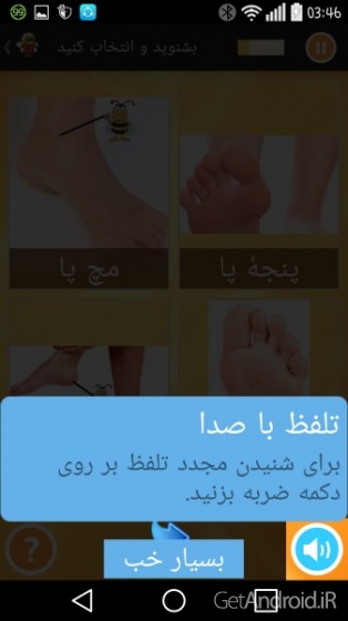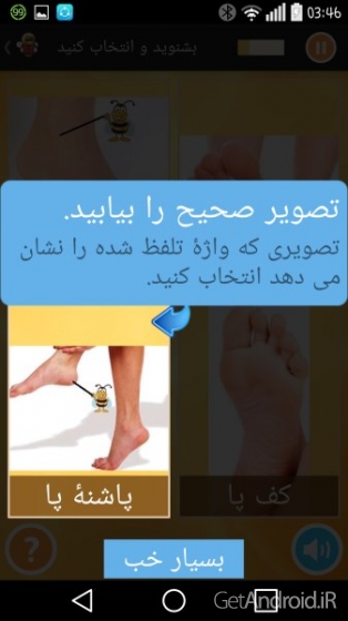 ✢ شنیدن و انتخاب کردن؛ برنامه لغات را تلقط می کند و شما باید لغات صحیح را انتخاب کنید.