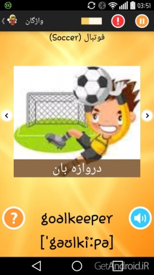 به شما معرفی کرده و به شما این اطمینان را میدهیم که با پیگیری مداوم در کمترین زمان ممکن به نتیجه ای حیرت آور میرسد.این اپلیکیشن مشهور که ساخته ی شرکت funeasylearn می باشد که با بیش از 5 میلیون دانلود از سایت Google Play از محبوبیت خوبی برخوردار بوده و رضایت مندی کاربران آندرویدی را همواره در لیست نظرات کاربران استفاده کننده می توانید مشاهده کنید. وجه تمایز این نم افزار با دیگر برنامه وجود عکس و آوای صوتی هر کلمه به صورت اختصاصی که بسیار به یادگیری شما کمک کرده و سریعتر شما را به نتیجه دلخواه میرساند.