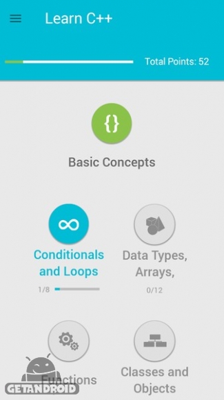 - وارد سایت گت اندروید شده و از بخش جستجو عبارت "Learn C++" را تایپ کنید