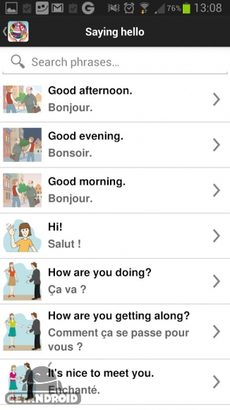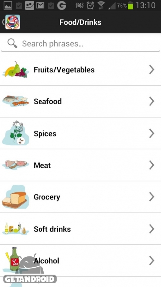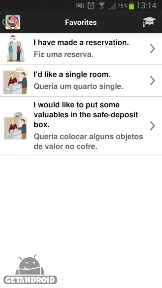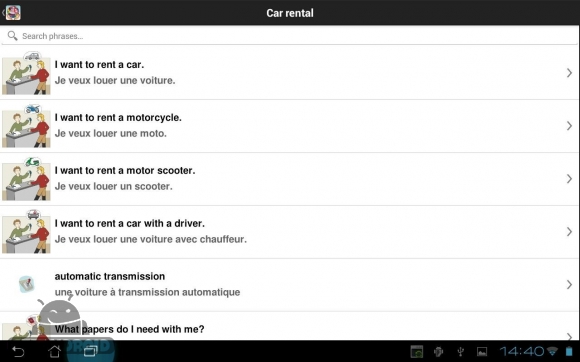 شما می توانید برای سفارش بلیط های هواپیما، رزرو کردن اتاق های هتل، بردن ماشین به تعمیرگاه و یا سفارش یک وعده غذایی در یک رستوران، بدون هیچ مهارت زبانی از Travel Interpreter استفاده کنید. بیش از 2200 عبارت و کلمه برای هر زبان شامل می شود، که همه آنها به وضوح با توجه به موضوع مربوطه طبقه بندی شده اند،
