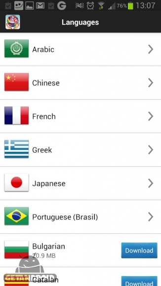 ✤ شما می توانید تا 32 زبان هدف را دانلود کنید: فارسی، عربی، آلمانی، فرانسوی، اسپانیایی (اسپانیا)، اسپانیایی (امریکا لاتین)، ایتالیایی، پرتغالی (پرتغال)، پرتغالی (برزیل)، دانمارکی، هلندی، فنلاندی، سوئدی، نروژی، لهستانی، چک، اسلواکی، روسی، بلغاری، یونانی، مجارستانی، رومانیایی، ترکی، چینی، ژاپنی، کره ای، عبری، تایلندی، هندی، ویتنامی، کاتالان، رومانیایی و اوکراینی.