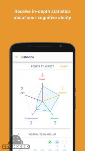 شامل بازی ها و تمرین های فکری می باشد که به شما امکان تقویت مغز را خواهد داد. در این برنامه شاهد بازی های مختلفی خواهید بود که به گونه ای طراحی شده اند تا بتوانند مغز شما را به خوبی به چالش بکشند. تمرین هایی که به شما نمایش داده خواهد شد بر اساس مهارت هایی است که برنامه طبق پاسخ گویی های شما از شما به دست آورده است. همچنین در این برنامه شاهد نمایش آمارها و نمودارهای مختلفی خواهید بود که میزان پیشرفت شما در طول بازه زمانی که از برنامه استفاده کرده اید را نمایش می دهد.برخی از ویژگی های بازی فکری Memorado - Brain Games اندروید :