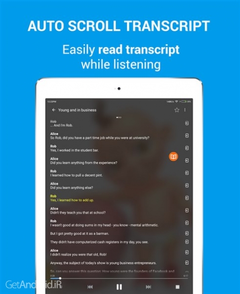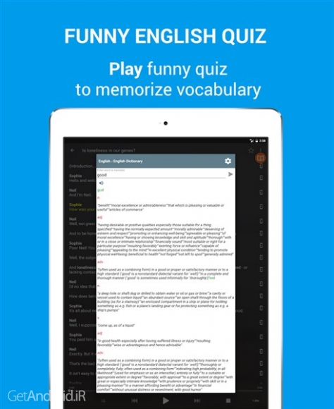 برنامه Learn English Listening Pro 4.5.4 برای کسانی که میخواهند انگلیسی را به عنوان زبان دوم یاد بگیرند و در گرامر، صحبت کردن و قدرت شنیداری این زبان موفق باشند بسیار کارامد خواهد بود. شما میتوانید از طریق تمرین مکالمات ساده ی انگلیسی در یادگیری این زبان کوشا باشید. هر درس شامل صدا، متن و فهرست لغات بوده که به بهبود گرامر ، صحبت کردن و افزایش واژگان این زبان به شما کمک میکند. همچنین وجود تست ها و سوالات انگلیسی سرگرم کننده بی تاثیر نخواهد بود. و البته گفتگو با دیگر کاربران و استفاده از تشخیص صدا در حین مکالمه گزینه ی دیگری برای بهبود زبان انگلیسی شما خواهد بود.