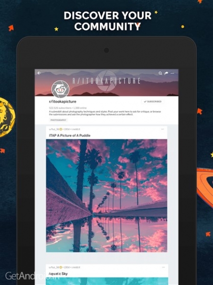 بیش از 100 هزار فعال وجود دارد که می توانید در آن بخوانید، فکر کنید، بحث کنید و هر موضوعی که برای شما اهمیت دارید را مطالعه کنید. Reddit رایگان است و برای همه امکان ارسال، اشتراک گذاری، رای دادن و بحث می باشد. این برنامه توسط مردم طراحی شده و در Reddit، حریم خصوصی و نظرات شما مهم است. شما می توانید علاقه خود را به کتاب های مورد علاقه، فیلم ها، بازی های ویدئویی، ورزش، نمایش های تلویزیونی، موسیقی و تکنولوژی با میلیون ها نفر از افرادی که علایق خود را به اشتراک می گذارند به اشتراک بگذارید. برنامه رسمی Reddit ویژگی های جدیدی مثل امکان چت، چت گروهی انجمن و غیره را نیز شامل می شود.شما می توانید به جامعه بپیوندید، اخبار خود را پیدا کنید، از مشاوره بخواهید در مورد ورزش صحبت کنید و نظر خود را بیان کنید. اشتراک شخصی خود را با مشترک شدن به subreddits های مورد علاقه خود ایجاد کنید.