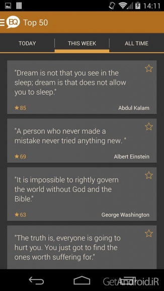 - وارد سایت گت اندروید شده و از بخش جستجو عبارت "Brilliant Quotes & Quotations" را تایپ کنید