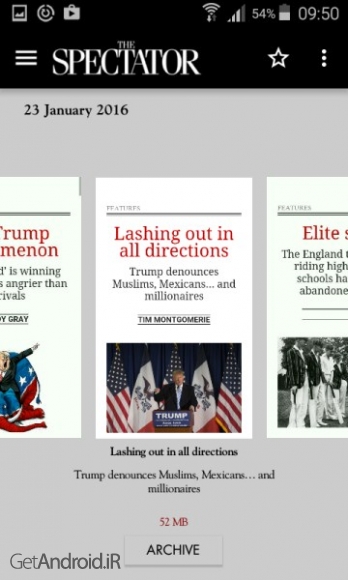 - وارد سایت گت اندروید شده و از بخش جستجو عبارت "The Spectator Magazine" را تایپ کنید