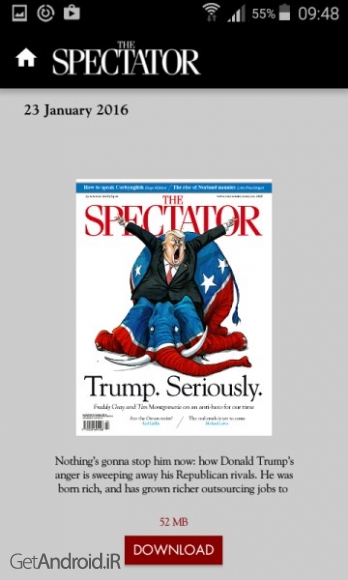 برای دانلود The Spectator Magazine و نصب آن از سایت گت اندروید، مراحل زیر را دنبال کنید: