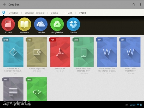 ✔ کتاب ها و فایل های متنی تان را از خدمات Cloud نظیر Google Drive ، One Drive و Dropbox مستقیما به کلکسیون کتاب خود به اشتراک بگذارید.