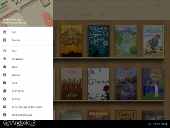 - وارد سایت گت اندروید شده و از بخش جستجو عبارت "eReader Prestigio: Book Reader" را تایپ کنید