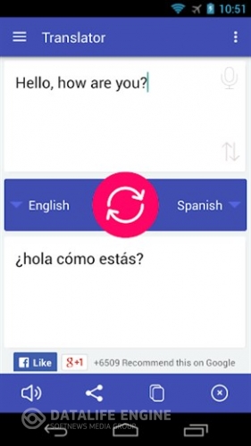 یک مترجم صوتی و متنی رایگان به تمام زبان ها می باشد. اگر در هنگام سفر در ارتباط مشکل دارید با استفاده از این برنامه مشکل خود را حل کنید. بر روی تلفن همراه یا تبلت خود بروید و عبارتی را که می خواهید ترجمه کنید، تایپ کنید، زبان اصلی و زبان مورد نظر خود را انتخاب کنید و دکمه «ترجمه» را فشار دهید. در کادر زیر متن، ترجمه به هر برنامه دیگر، ایمیل، اس ام اس، واتس اپ ، فیس بوک یا در هر آنچه که شما می خواهید، نمایش داده می شود.علاوه بر این، برای درک بهتر از زبان، یک دکمه وجود دارد که کلمات با لهجه اصلی می گوید. این برنامه به این دلیل است که اگر شما در حال یادگیری زبان هستید یا به دلیل سفر به کشوری موانع زبانی خود را برطرف کنید، پس این مترجم عالی برای شما است و نباید بدون این برنامه عالی سفر کنید! اگر شما می خواهید ترجمه خود را با دوستانتان به اشتراک بگذارید، می توانید به راحتی به طور مستقیم بر دیوار فیس بوک خود منتشر کنید و یا آن را از طریق WhatsApp یا فیس بوک، ایمیل ، SMS و یا هر نرم افزار دیگری که شما بر روی دستگاه تلفن همراه خود نصب کرده اید ارسال کنید. در صورتی که نمی خواهید بنویسید و میخواهید به زبان دیگری صحبت کنید، میتوانید صدای خود را در این برنامه مترجم زبان استفاده کنید. فقط نماد میکروفون را فشار دهید.