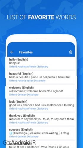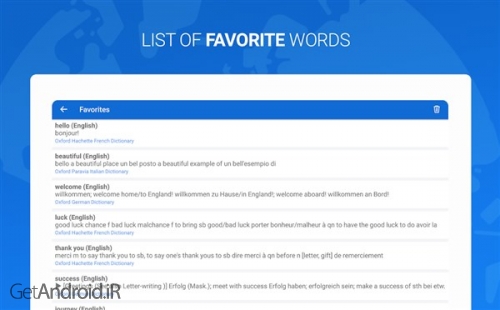 - لیستی از ترجمه های مورد علاقه خود را در منوی اصلی خود ایجاد کنید و به آسانی آنها را به دست آورید.
