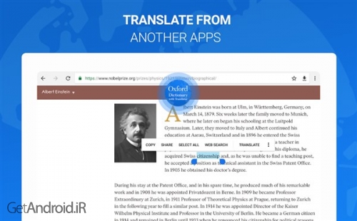 - ترجمه کلمات و پاراگراف ها از برنامه های دیگر به عنوان مرورگرهای وب و یا فیسبوک