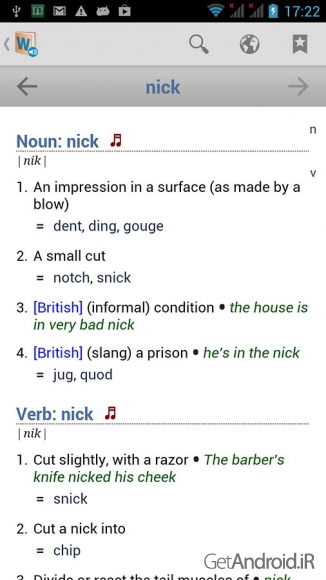- وارد سایت گت اندروید شده و از بخش جستجو عبارت "WordWeb Audio Dictionary" را تایپ کنید