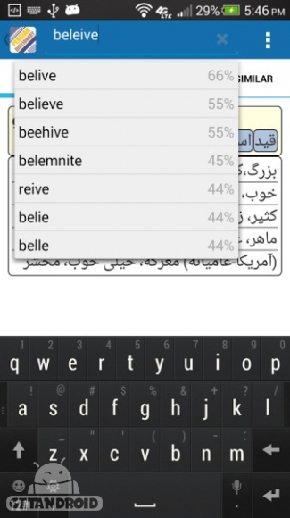یکی از بهترین و کاملترین دیکشنری های موبایل می باشد که قابلیت ترجمه لغات انگلیسی به فارسی و فارسی به انگلیسی را دارد. این دیکشنری بیش از 100،000 لغت دارد. این برنامه بدون نیاز به اتصال به اینترنت هم کار میکند.ویژگی های جدید برنامه aFarsi اندروید :