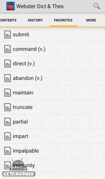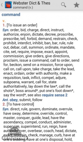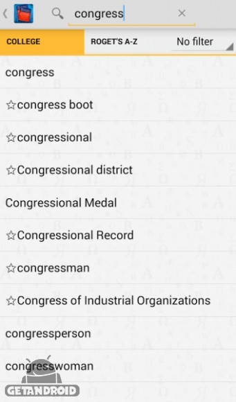 - وارد سایت گت اندروید شده و از بخش جستجو عبارت "Websters Dictionary+Thesaurus" را تایپ کنید