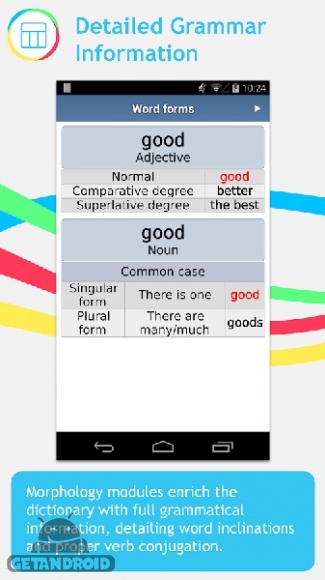 نام یک پلتفرم آموزشی بسیار قدرتمند برای گوشیها و تبلتهای اندرویدی است که توسط کمپانی شناخته شده و پرآوازه Paragon Software GmbH منتشر شده و در دسترس کاربران قرار گرفته است. با نصب این اپلیکیشن قادر خواهید بود به بیش از 180 دیکشنری بسیار مفید در 35 زبان زنده دنیا از جمله انگلیسی، فرانسوی، آلمانی ایتالیایی، ترکی، عربی و غیره دسترسی داشته باشید. رابط کاربری برنامه طوری طراحی شده است که در صورت استفاده از تمامی دیکشنریهای موجود هم کاملا گویا بوده و اصلا دچار سردرگمی نخواهید شد. برای استفاده هر چه راحت تر تمامی ابزارهایی که یک دیکشنری خوب باید داشته باشد در این برنامه هم گنجانده شده است؛ بنابرین میتوانید به آسانی به جستجوی کلمات ناآشنا پرداخته و حتی در صورت اشتباه نوشتن یک کلمه، لغات مشابه آن را مشاهده کنید. باید به این نکته اشاره کنیم که این برنامه از لحاظ آموزشی ارزش بسیار بالایی دارد؛ چرا که برخی از دیکشنریهای آن ( English, French, German, Italian, Russian, Chinese و Spanish) قابلیت ارائه تلفظ صوتی را داشته و حاوی نکات زبان شناسی مربوط به لغتها هستند که این امر در نوع خود بسیار مفید و کاربردی میباشد.چناچه در حال فراگیری یکی از زبانهای زنده دنیا هستید و دوست دارید که منبعی ارزشمند از دیکشنریهای زبانهای مختلف را همیشه همراه خود داشته باشید، پیشنهاد میکنیم حتما این برنامه را دانلود و نصب نموده و از نکات آموزشی آن نهایت استفاده را ببرید.