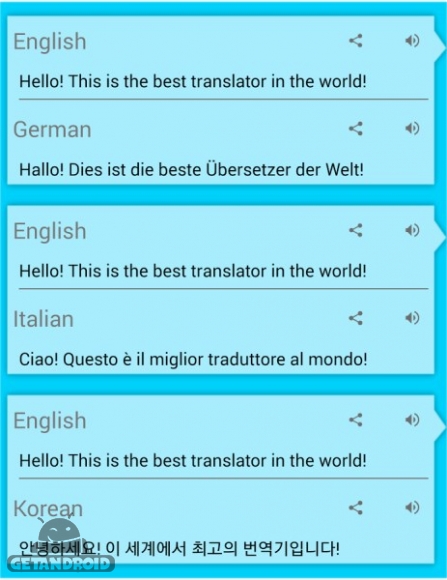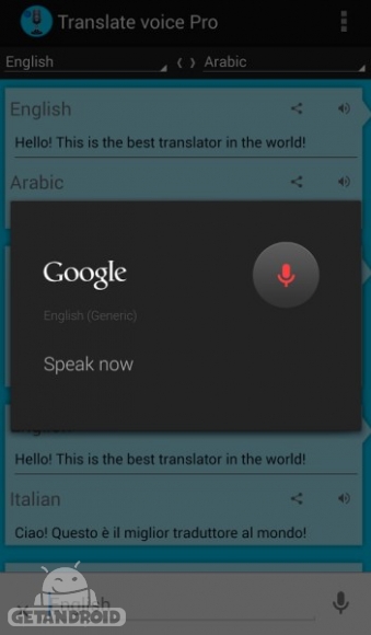 ترجمه با عملکرد صدا که با 44 زبان کار می کند.