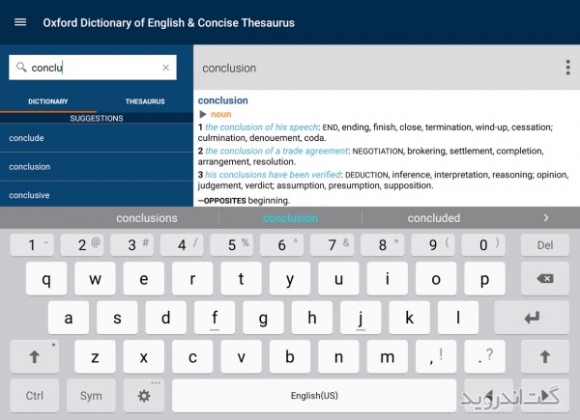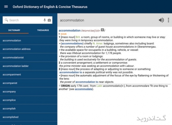 - وارد سایت گت اندروید شده و از بخش جستجو عبارت "Oxford Dictionary of English & Thesaurus" را تایپ کنید