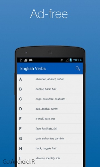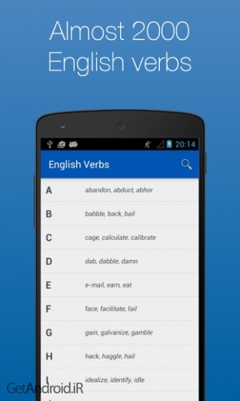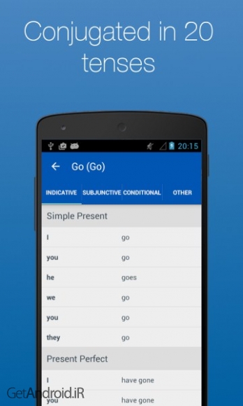 - وارد سایت گت اندروید شده و از بخش جستجو عبارت "English Verb Conjugator Pro" را تایپ کنید