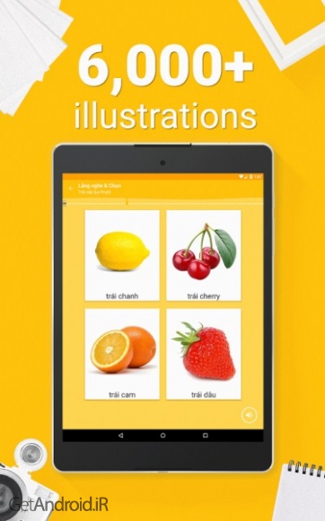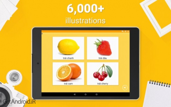 ✤ 6000 کلمه با تصاویر برای نشان دادن کلمات، رونوشت آوایی و تلفظ ضبط شده توسط زبان مادری.
