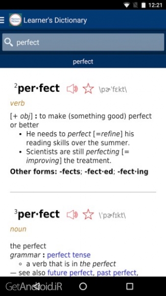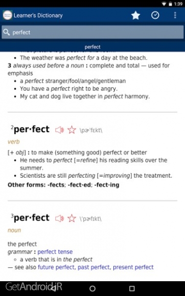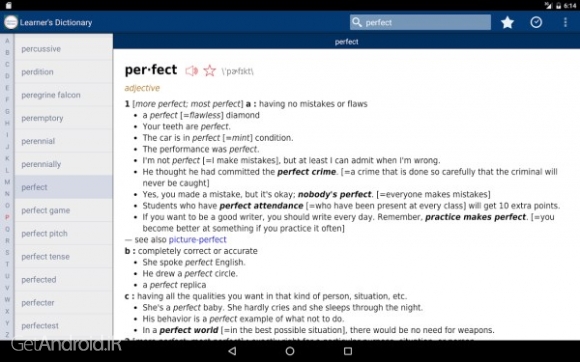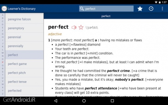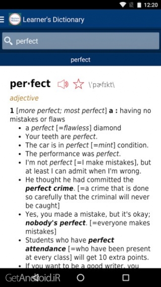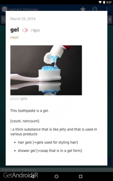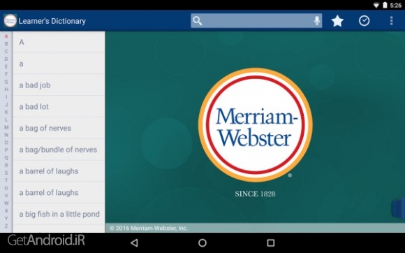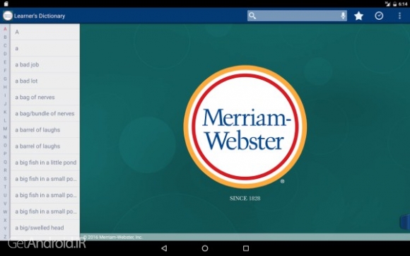 Learner's Dictionary - English v1.0 بهترین برنامه فرهنگ لغت در دسترس برای زبان آموزان زبان انگلیسی، از مریام وبستر می باشد که توسط این نرم افزار میتوانید استادانه بنویسید و انگلیسی صحبت کنید و این برنامه به ویژه برای یادگیرندگان و معلمان زبان طراحی شده است. بهبود درک خود از کلمات و عبارات انگلیسی با تعاریف کامل، روشن و نمونه استفاده های متعدد. برنامه همچنین جستجوی صوتی - به شما اجازه نگاه کردن یک کلمه بدون نیاز به اسئل کردن آن - همراه با تلفظ صوتی، کلام روز، مورد علاقه، و بیشتر را ارائه می دهد. این یک برنامه ضروری برای یادگیری زبان انگلیسی هر کسی است که گت اندروید آنرا برای اولین بار در میان سایت های ایرانی و فارسی زبان برای شما ارائه کرده است.