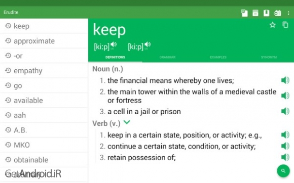 آموزش دانلود Dictionary : Word Definitions & Examples - Erudite: