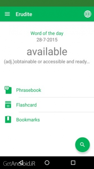 - وارد سایت گت اندروید شده و از بخش جستجو عبارت "Dictionary : Word Definitions & Examples - Erudite" را تایپ کنید