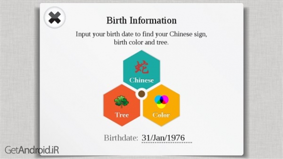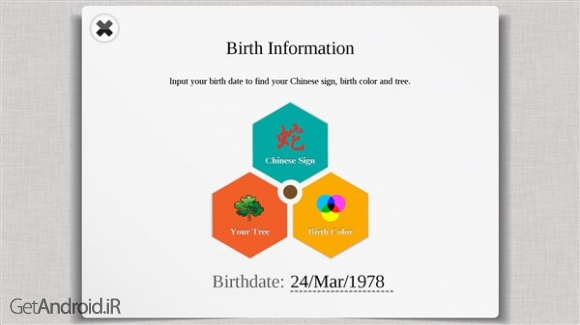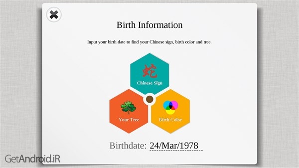 ✔ جزئیات بیشتر مانند: نشانه چینی، درخت و رنگ تولد شما گت اندروید.