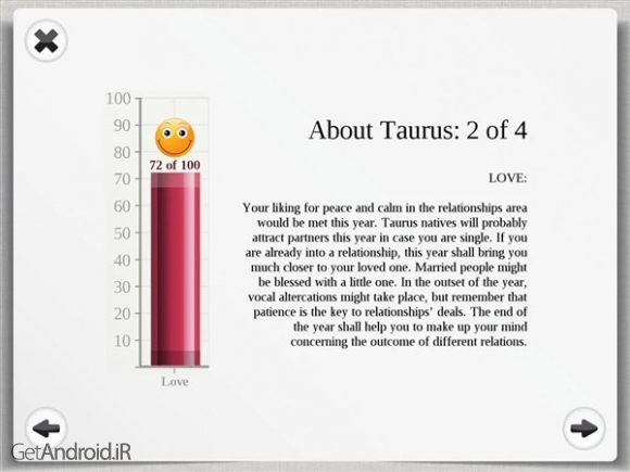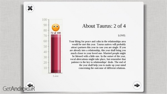 یکی از بهترین و لوکس ترین برنامه های فال و طالع بینی برای گوشی ها و تبلت های اندروید می باشد. برنامه دارای گرافیکی خوب و روان بوده و دارای رابط کاربری زیبا و کاربرپسند بهمراه گرافیک کامل HD (در صورت پشتیبانی دستگاه شما) می باشد. این برنامه از ستاره شناسان حرفه ای استفاده میکند تا بهترین نتایج را به شما نشان دهد. همچنین این برنامه در مورد طالع بینی شخصی برج های فلکی حمل ، ثور ، جوزا ، سرطان ، اسد ، سنبله ، میزان ، عقرب ، قوس ، جدی ، دلو ، حوت اطلاعات کاملی را به شما می دهد. در کنار اینها یکی از بخش های بسیار پرکاربرد این نرم افزار که بسیار به دردتان خواهد خورد بخش فال روزانه ، فال عشق ، فال ثروت ، و فال سلامتی آن می باشد. البته یادآور می شویم که این برنامه به زبان انگلیسی است!.ویژگی های برنامه 2018 Astrology & Horoscope اندروید :
