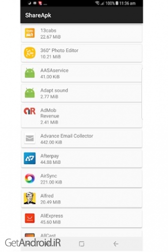 - وارد سایت گت اندروید شده و از بخش جستجو عبارت "Share Apk" را تایپ کنید