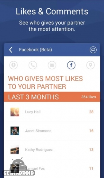 یک اپلیکیشن کاربردی است که به زوجها این مکان را میدهد تا به صورت آنی به نظارت، اشتراکگذاری و تبادل اساماس، تاریخچه تماس، تاریخچه مکانها از GPS و پیامهای فیسبوک همدیگر بپردازند. این برنامه همچنین میتواند برای والدینی که قصد دارند فرزند خود را کنترل کنند و نگران آینده فرزند خود هستند که ببینند فزندشان با چه دوستانی در ارتباط هست مفید خواهد بود. این برنامه بهترین روش برای کنترل اعضای خانواده و کاهش حس خیانت در بین آنها خواهد بود.برخی از ویژگی های برنامه Couple Tracker – Phone monitor اندروید :