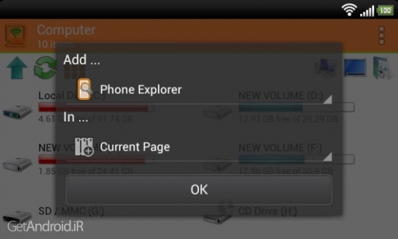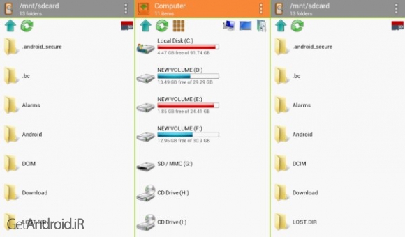 ✤ پشتیبانی از کشیدن و رها کردن (drag drop)( که از اندروید 1.6 به بالا کار می کند) حرکت، کپی، تغییر نام، حذف، آپلود، دانلود