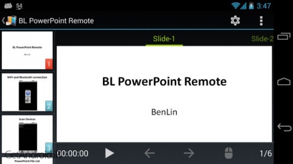 BL PowerPoint Remote - Free v2.6.151119 [Mod] توسط وای فای و بلوتوث به کامپیوترتان می تواند نمایش پاورپوینت تان را کنترل کند . به عبارت ساده تر میتوانید فایل های پاورپوینت موجود در کامپیوترهای شخصی را در گوشی اندرویدی خود اجرا کنید.