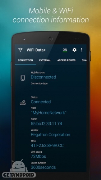 یک برنامه ضروری برای تجزیه و تحلیل شبکه های WiFi می باشد. WiFi Data به شما کمک خواهد کرد تا کیفیت سیگنال WiFi خود را تشخیص داده و وضعیت دستگاه را بررسی کنید.برخی از ویژگی های برنامه WiFi Data+ اندروید :