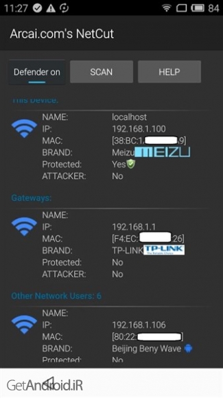 برای اتصالات وای فای و جلوگیری از هك میباشد كه برای اندروید منتشر شده است.برخی از ویژگی های برنامه NetCut اندروید :